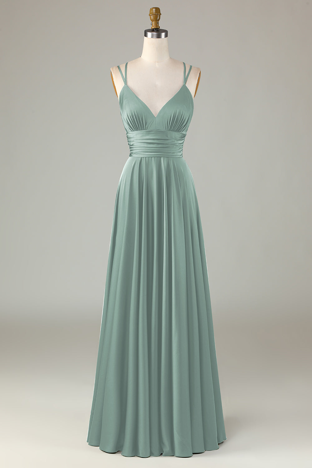 Dusty Blue A-Line Sleeveless Long Bridesmaid Dress