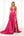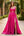 Fuchsia and Magenta Satin V-Neck A-Line Maxi Evening Dress with Sleeves