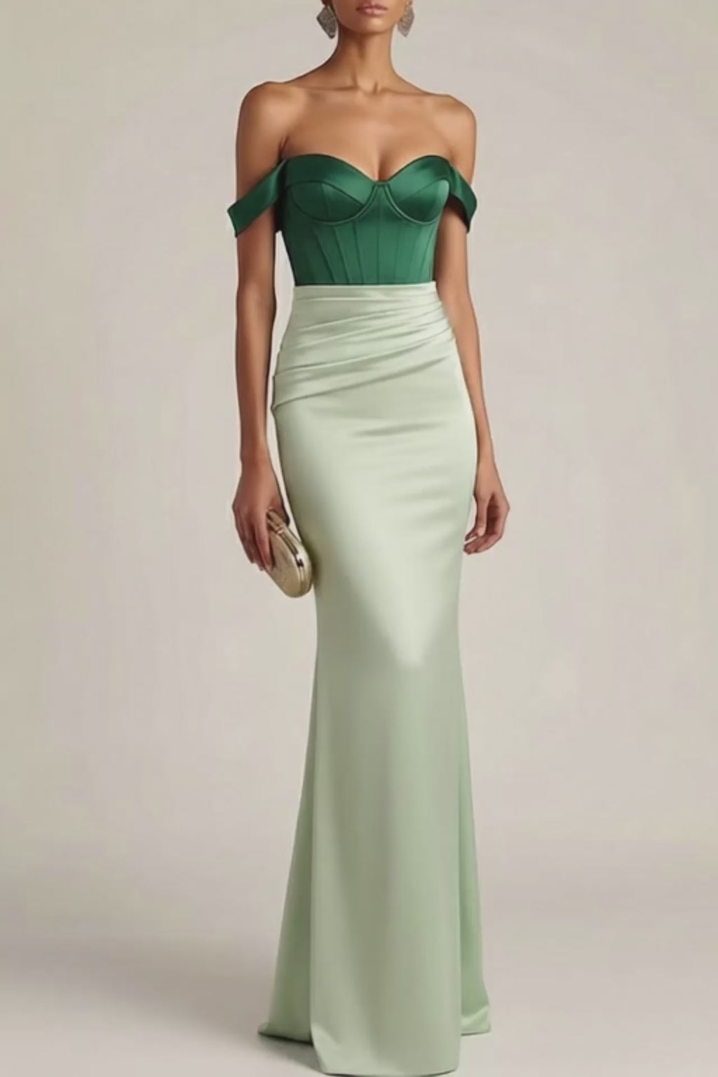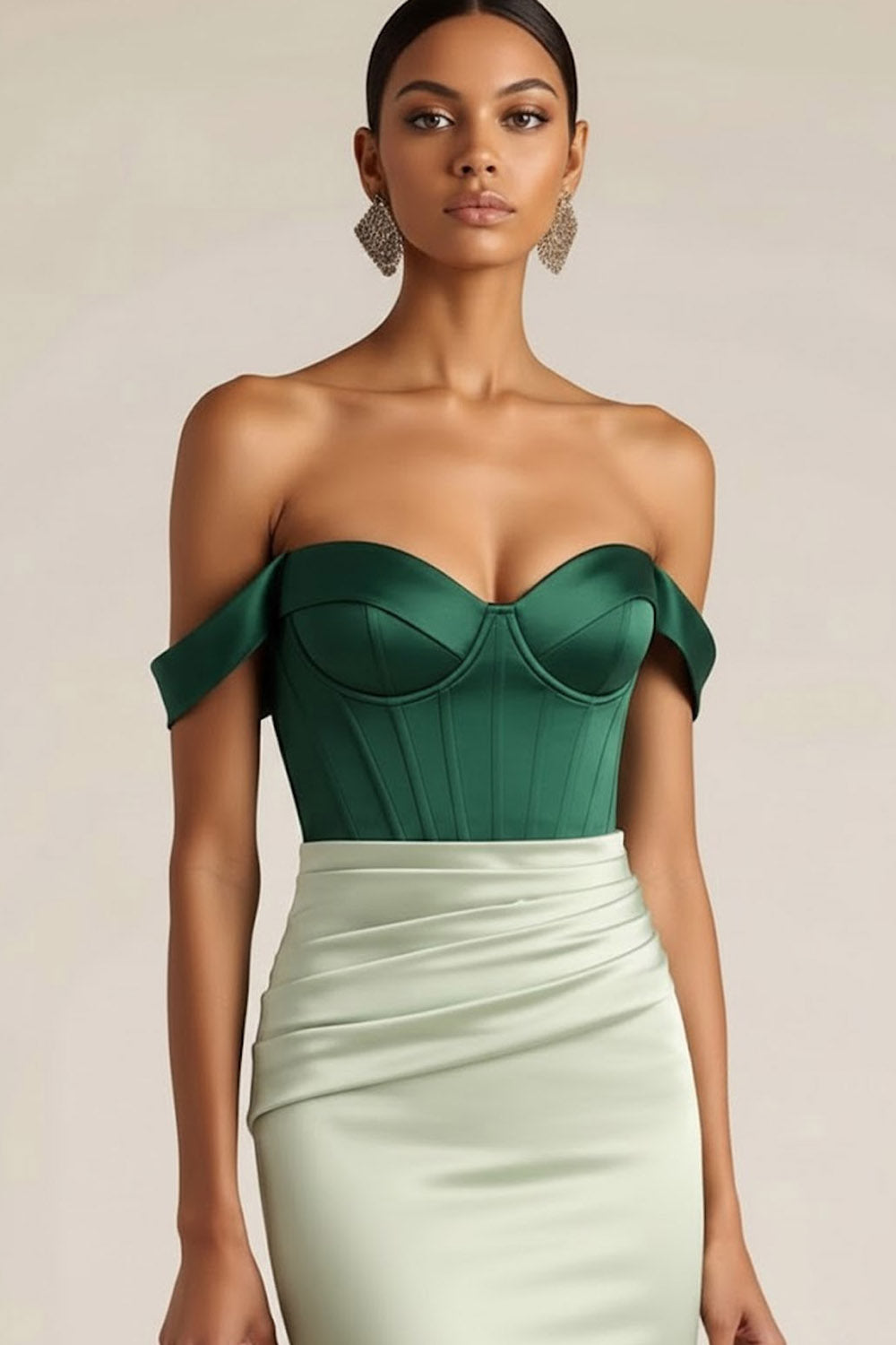 Green Mermaid Ruched Satin Long Corset Prom Dress