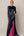 This dress exudes sophistication and bold elegance. The contrast of deep black with vibrant blue accents creates a striking, modern look. The sleek, fitted sheath silhouette hugs the body, creating a flattering, elongated shape. The combination of classic black with...