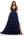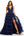 Navy V-Neck A Line Tulle Tiered Maxi Prom Dress with Slit