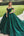 Dark Green Appliqued Ball Gown Maxi Satin Prom Dress with Slit