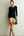 Black Chiffon Neck Collar Sheath Midi Evening Dress with Sleeves