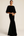 Black Tulle Boat Neck Maxi Evening Dress with Sleeves