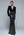 This striking party dress in shimmering black and grey metallic velvet features a sculptural one-shoulder neckline that flows into a slender floor-length silhouette. The luxurious fabric catches the light with a subtle sheen, while the elegant cut skims the figure...