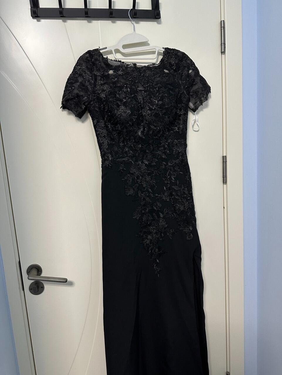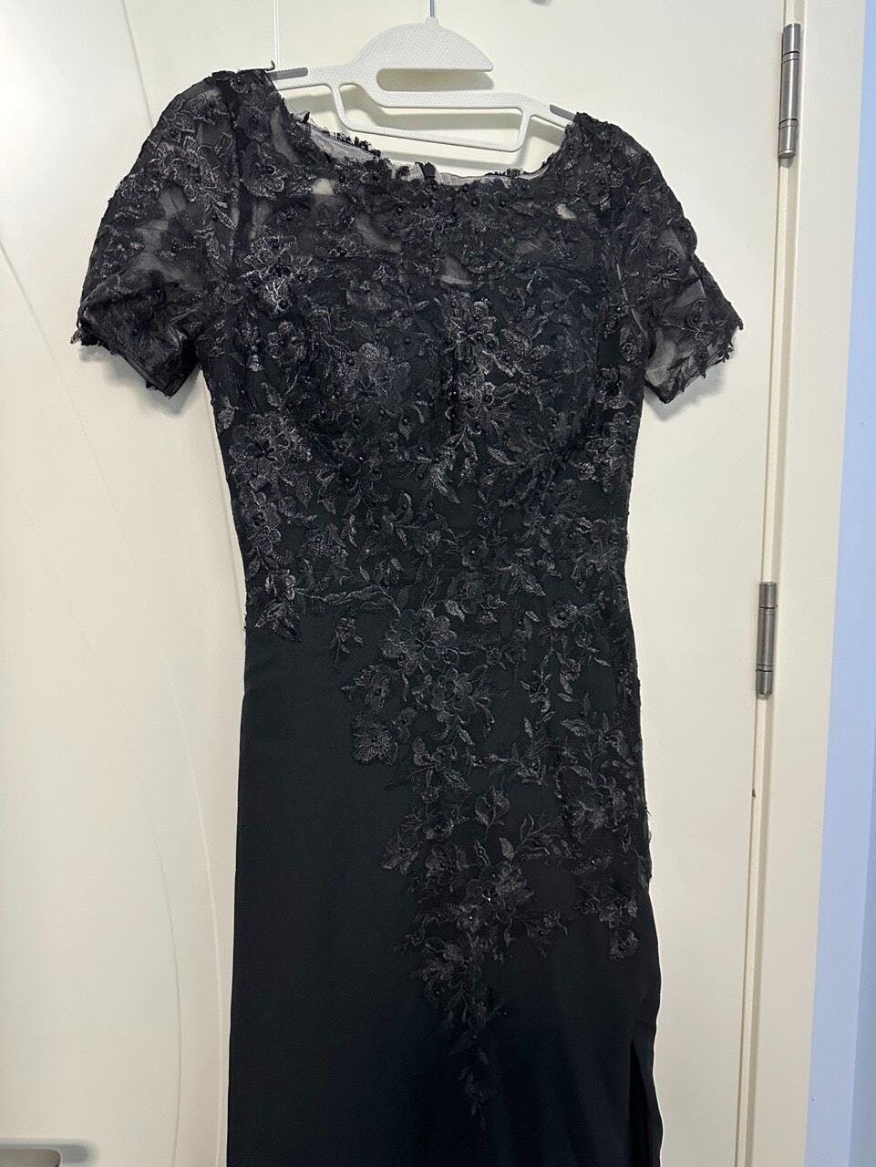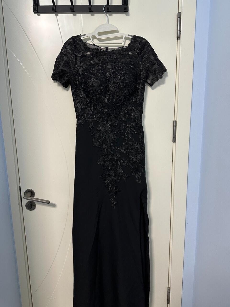 Black Sheath Round Neck Satin Mother of the Bride Dress with Slit