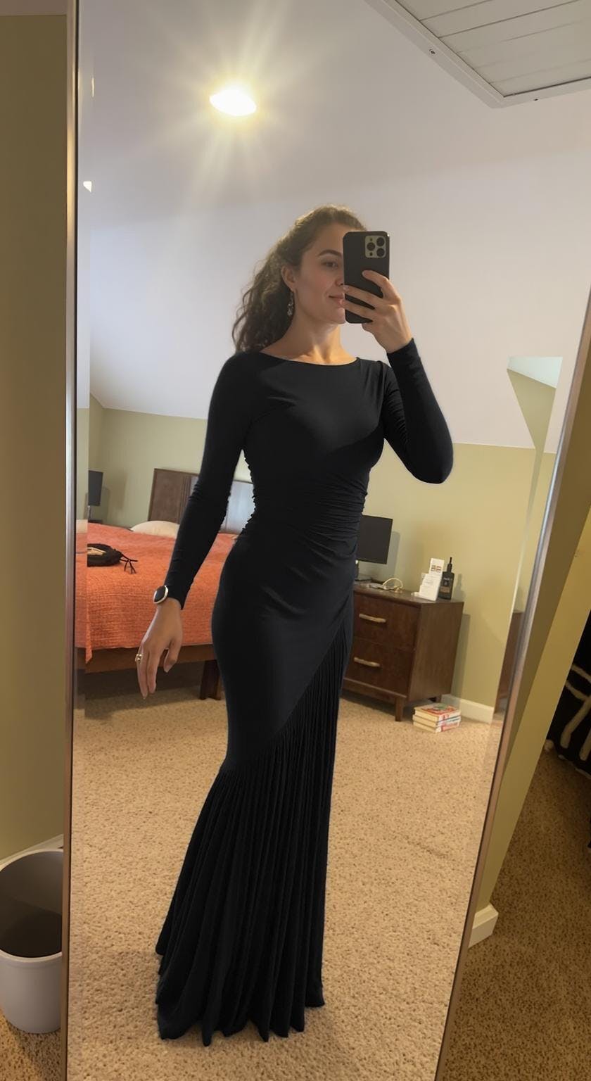 Black Boat Neck Mermaid Maxi Formal Dress with Sleeves