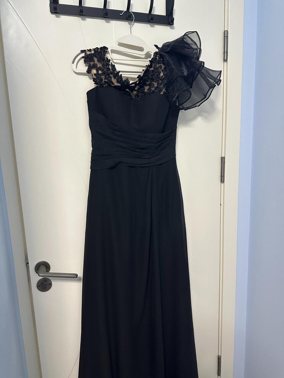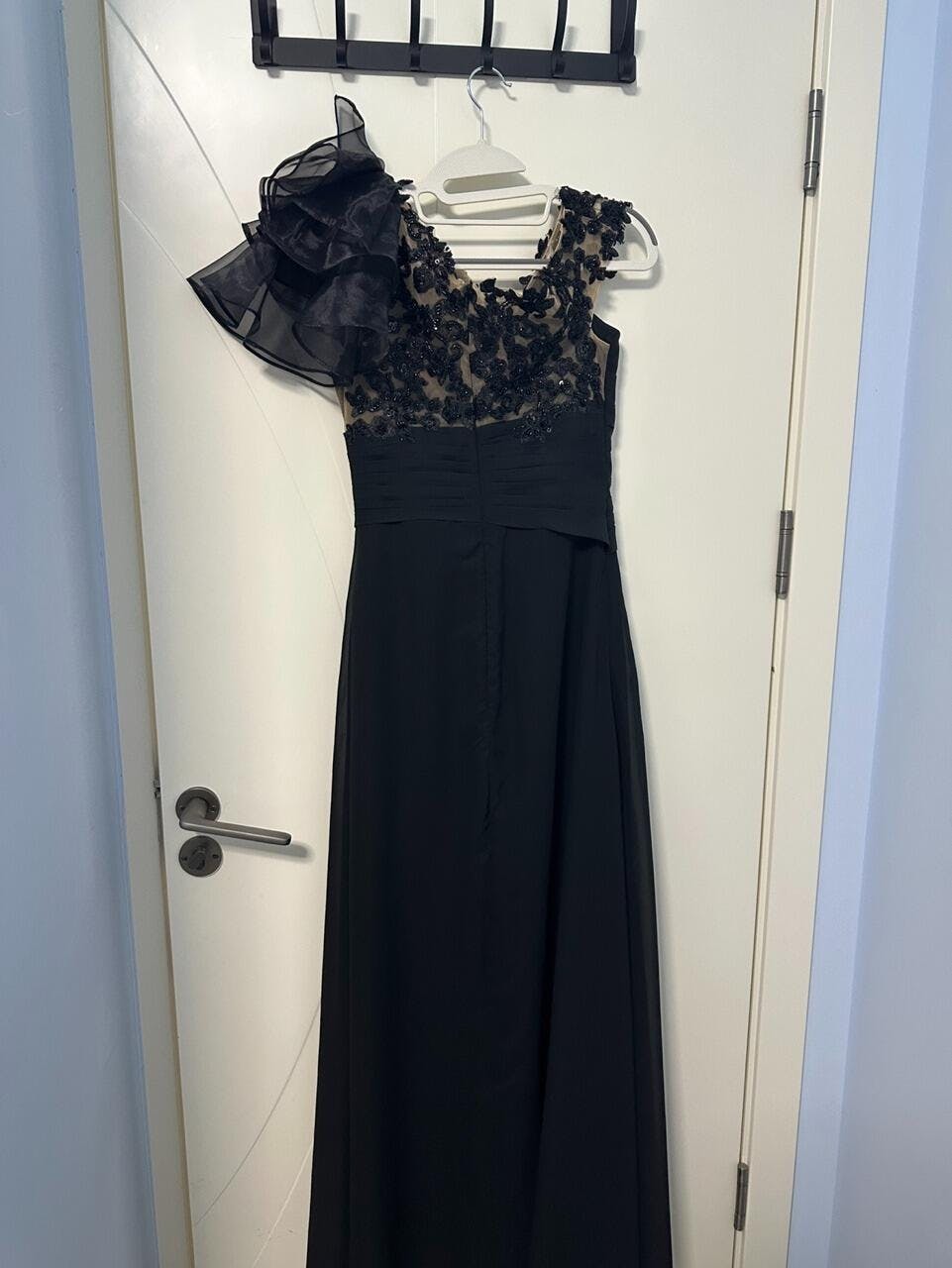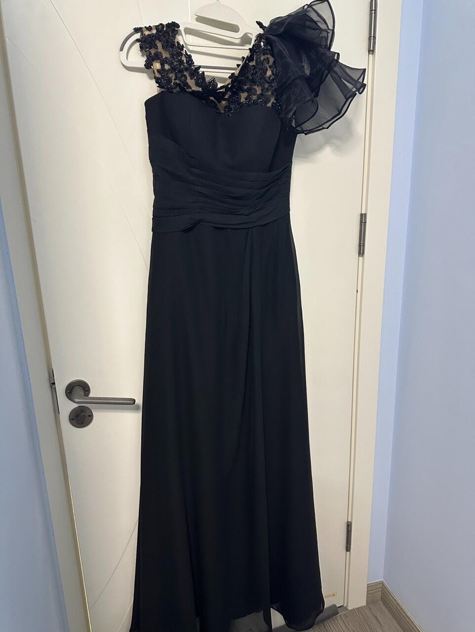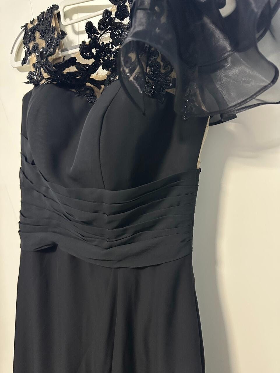 Black Chiffon Ruffled One Shoulder Maxi Mother of the Bride Dress with Lace