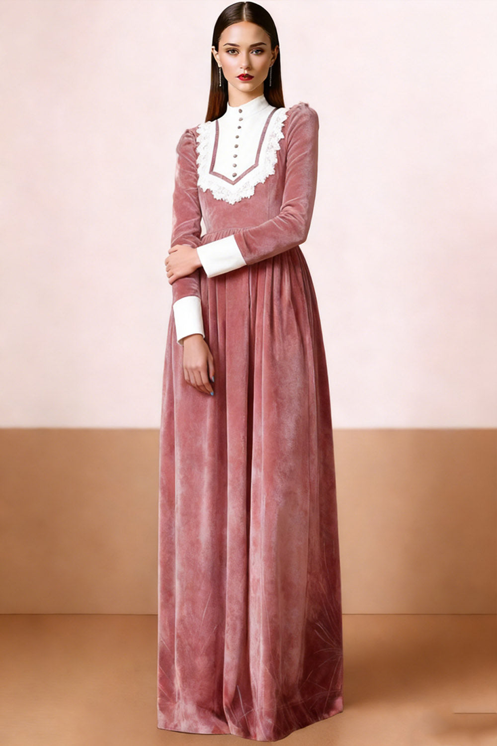 Black White Velvet Maxi Formal Dress with Buttons