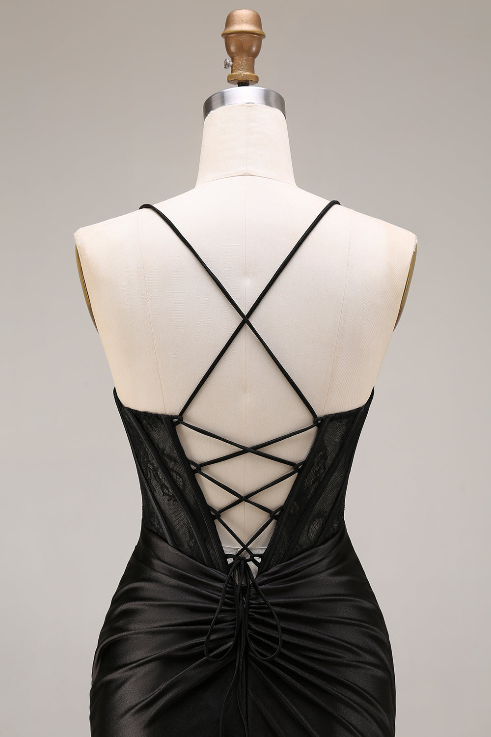 Black Draped Mermaid Corset Spaghetti Straps Ruched Long Prom Dress with Slit