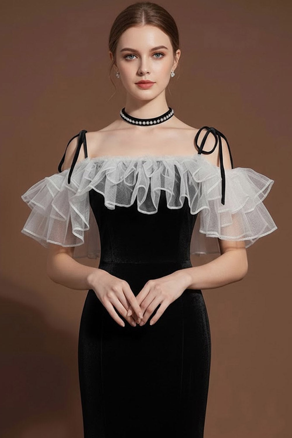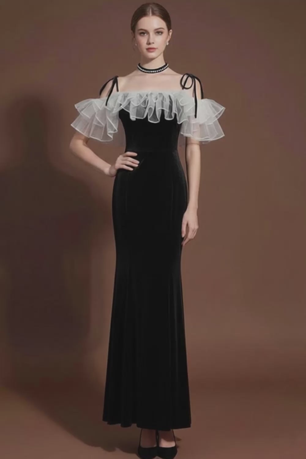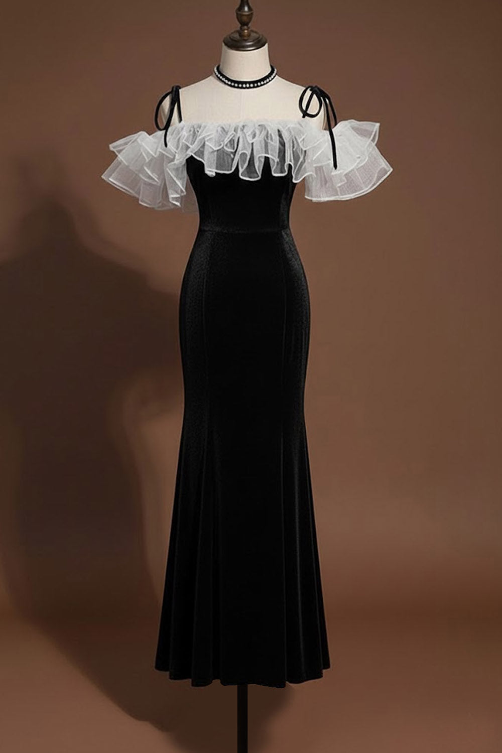 Black Ruffled Mermaid Cold Shoulder Long Formal Dress