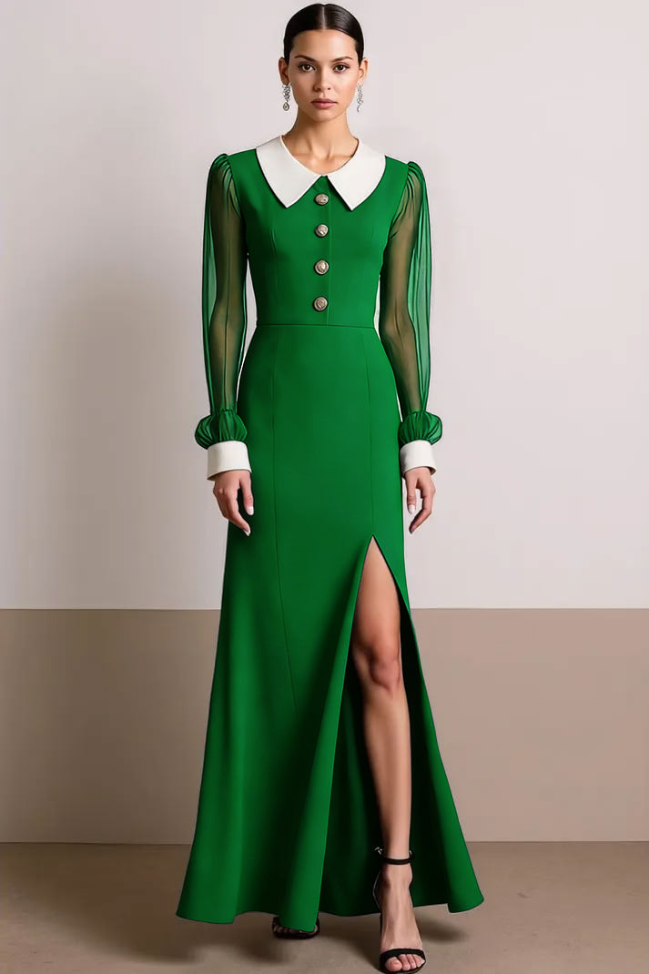 Black White Collar Neck Long Formal Dress with Slit