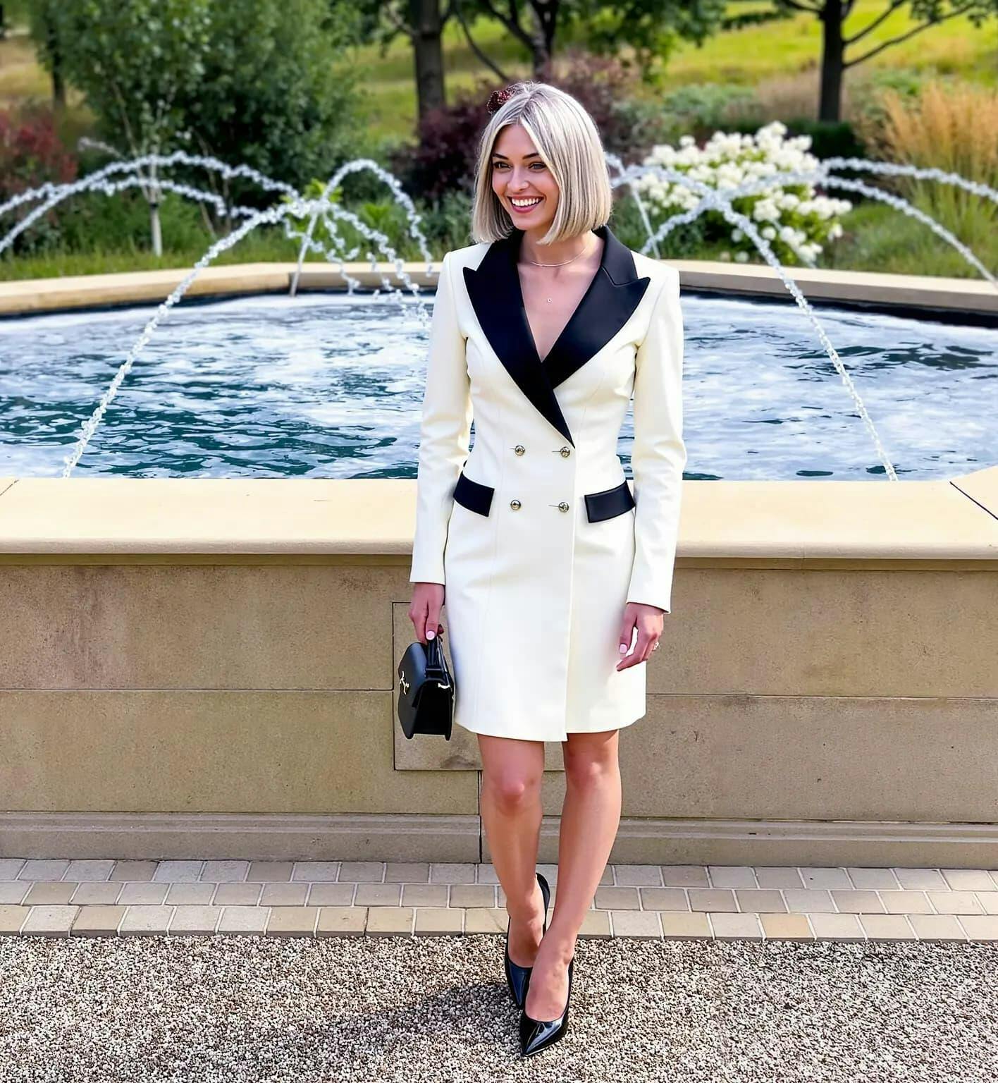 Ivory Double Breasted Peak Lapel Short Blazer Dress with Sleeves