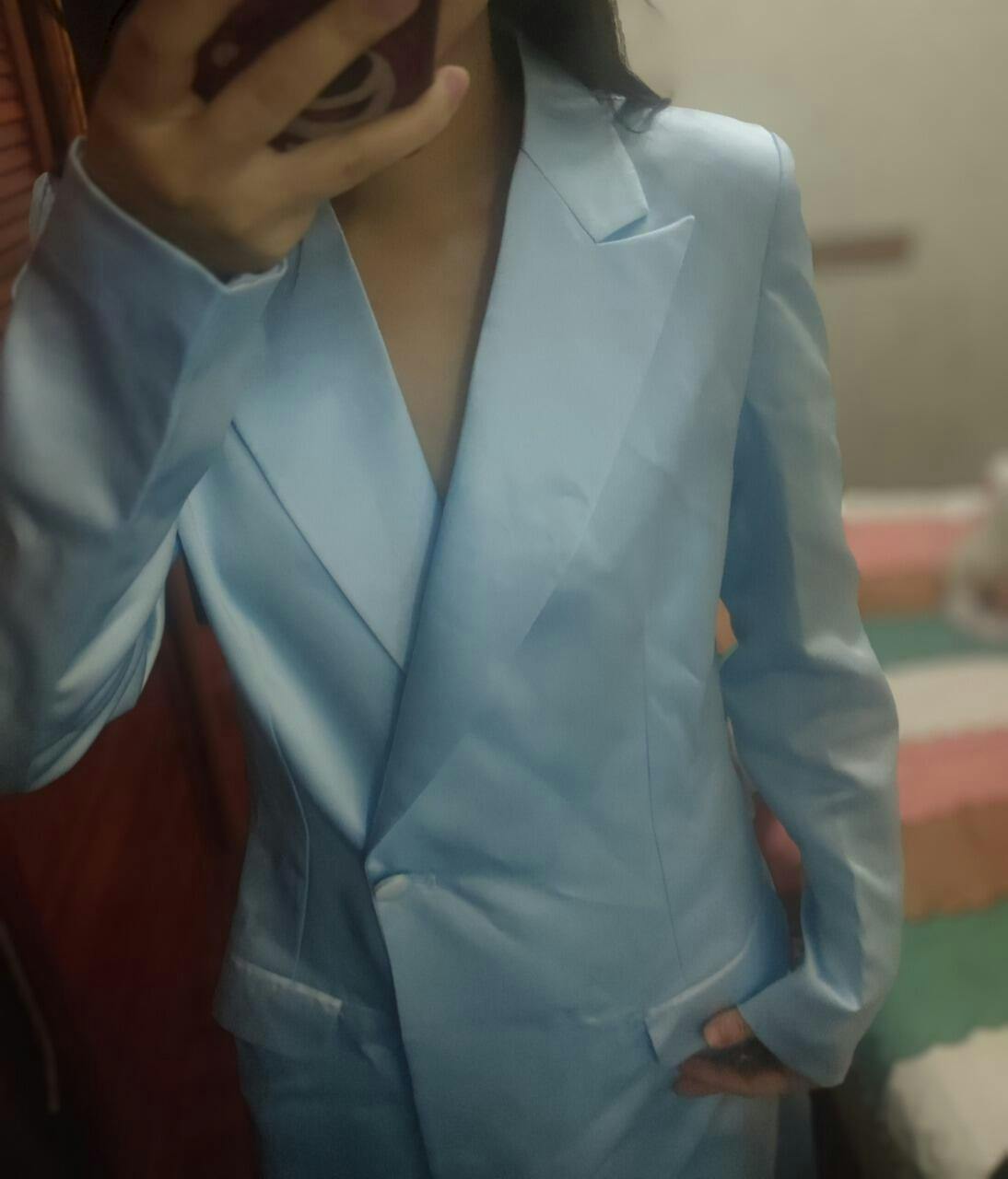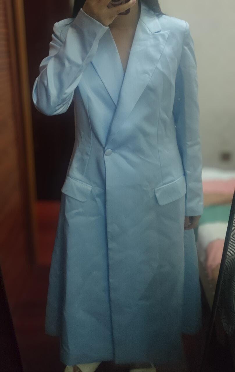 The dress is a stunning blend of sophistication and modern style. Crafted from high-quality fabric, this dress features a tailored silhouette that flatters the figure while ensuring comfort. The peak lapel design adds a classic touch, making it perfect for both professional and social occasions. Pair it with heels for a polished look or ankle boots for a more casual vibe. The refreshing sky blue hue makes it ideal for those who want to stand out while maintaining elegance.