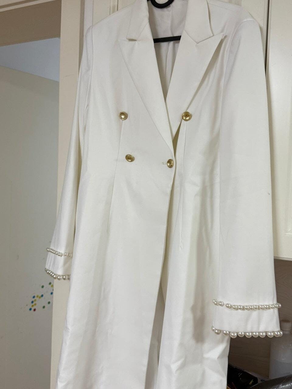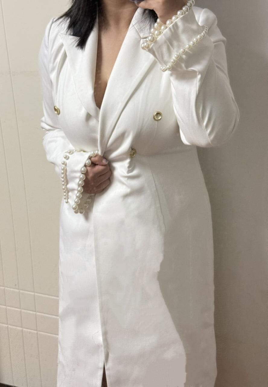 White Satin Peak Lapel Bodycon Midi Work Blazer Dress