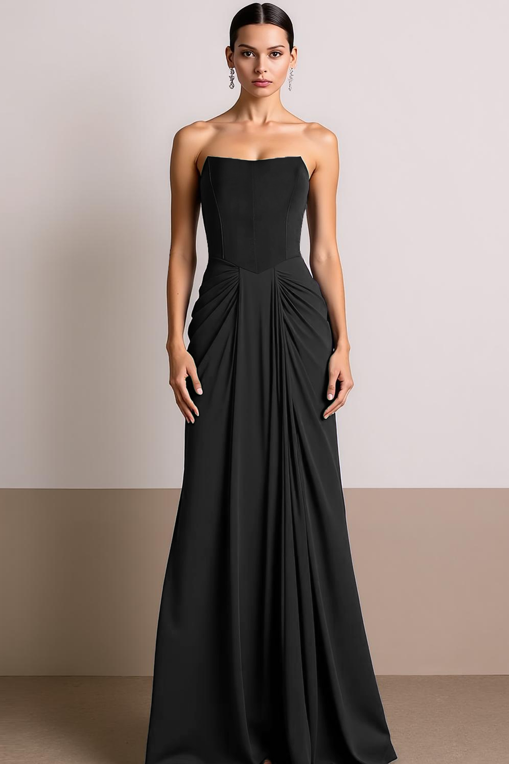 Navy Strapless Drape A Line Maxi Evening Dress