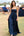 Navy Deep V-Neck Satin A Line Long Formal Dress with Slit