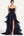 Navy Satin A Line Square Neck Maxi Formal Dress with Slit
