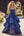 Blue Floral A Line Tiered Long Corset Prom Dress with Slit