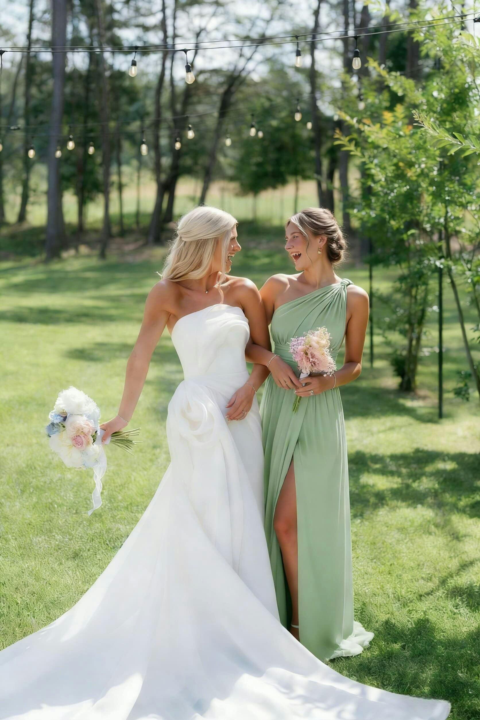 This dress beautifully combines elegance with a free-spirited bohemian flair. Crafted in a flowing maxi length, the dress drapes gracefully to the floor, offering a sophisticated yet effortless look. The side slit adds a hint of allure while allowing ease of movement, perfect for dancing and celebrating. The lightweight fabric flows beautifully with every step, ensuring both comfort and elegance throughout the day.