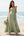 Light Green V-Neck Ruffled A Line Long Flowy Bridesmaid Dress