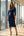 Navy Sheath Ruffled V Neck Midi Work Dress with Slit