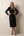 Black Peak Lapel Midi Bodycon Work Dress with Belt