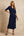 Navy Ruched Bateau Neck Short Work Dress with Slit