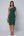 Dark Green Round Neck Ruched Pencil Midi Work Dress with Slit