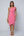 Pink Pencil Round Neck Ruched Midi Work Dress with Slit
