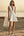 White A Line Pleated Tea Length Rehearsal Dinner Dress with Ruffles