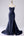 Blue Mermaid V-Neck Satin Long Appliques Sequin Prom Dress With Slit