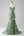 Green Sequined Floral Tulle A-Line Prom Dress with Slit