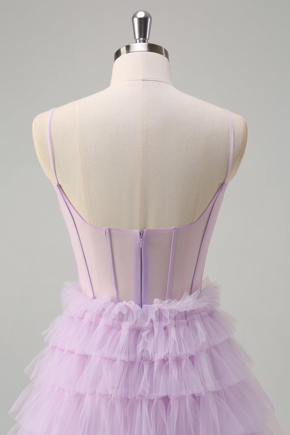 Elegant Light Purple A-Line Corset Tiered Prom Dress with Ruffles