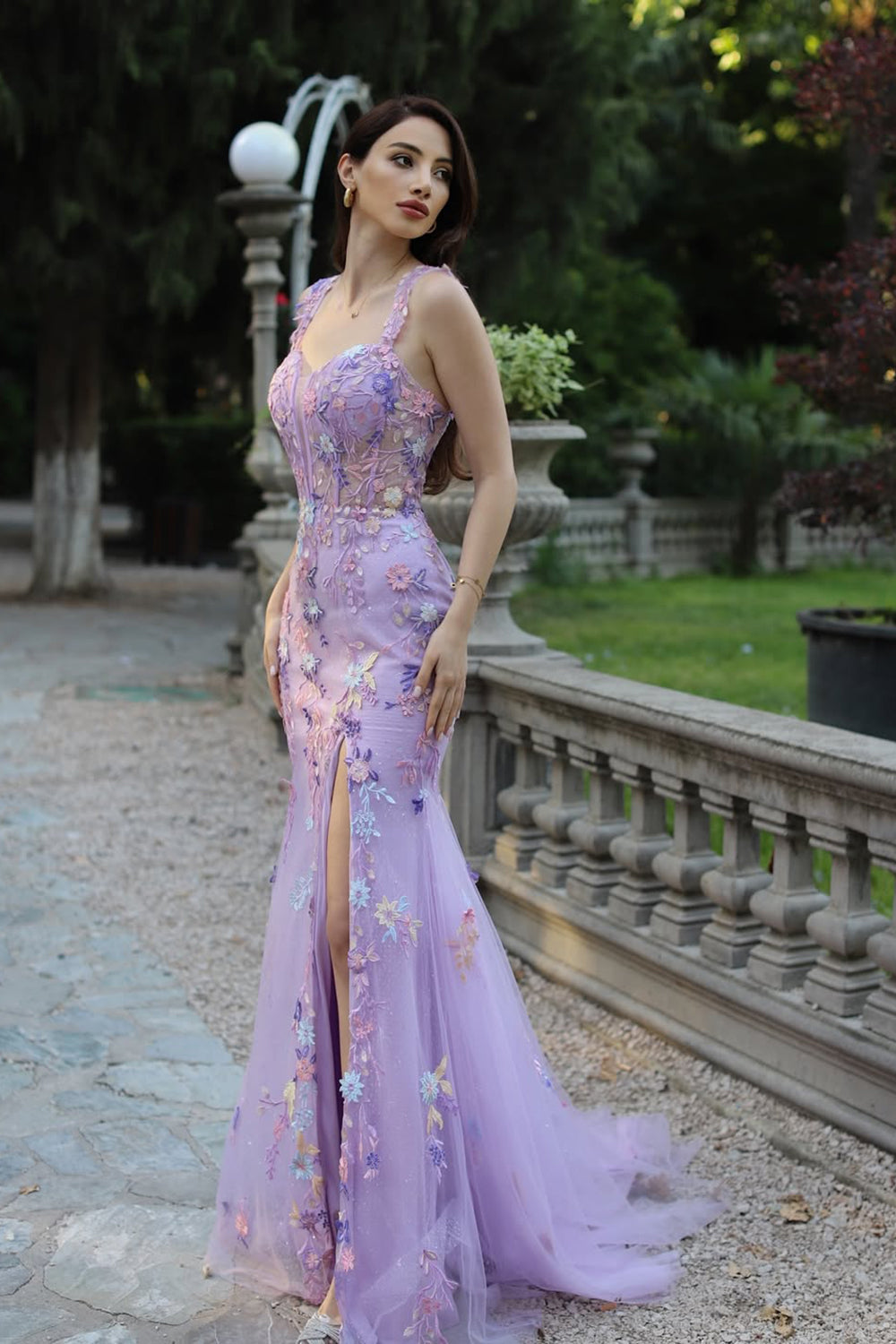 Mermaid Mauve Appliqued Maxi Corset Prom Dress with Slit