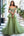 A Line Pleated V-Neck Dusty Sage Backless Prom Dress with Slit