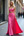 Fuchsia V-Neck Cut Out A Line Satin Long Prom Dress