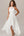 White Mermaid Ruffled Satin High-Low Engagement Dress with Slit