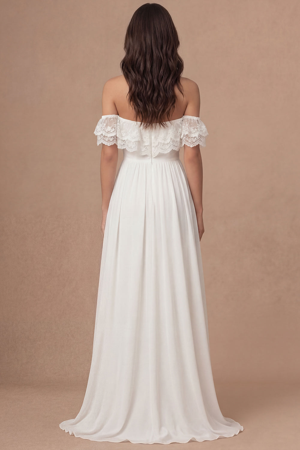 A Line Ivory Off the Shoulder Embroidered Long Bridal Shower Dress with Slit
