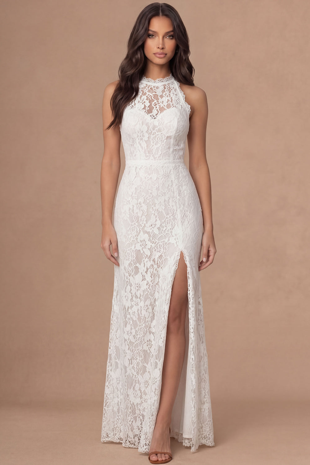 Floral Sheath Ivory Halter Neck Long Bridal Shower Dress with Slit