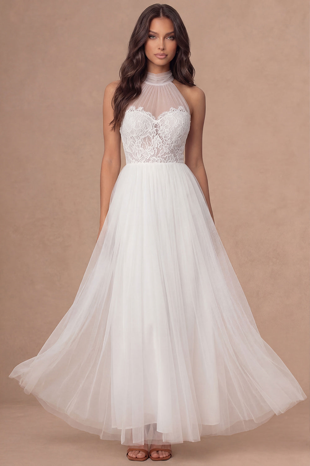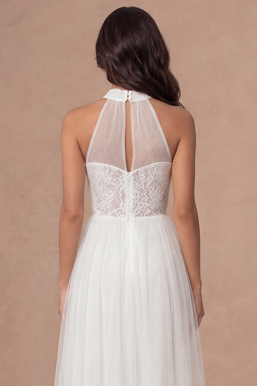 Halter Neck White A Line Floral Appliqued Long Wedding Reception Dress
