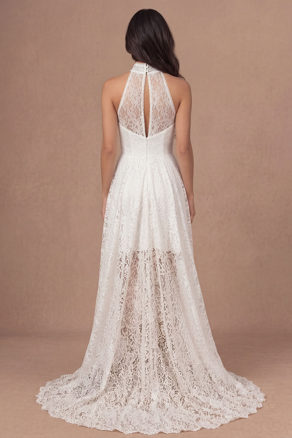 Ivory Halter Neck Embroidered High Low Bridal Shower Dress