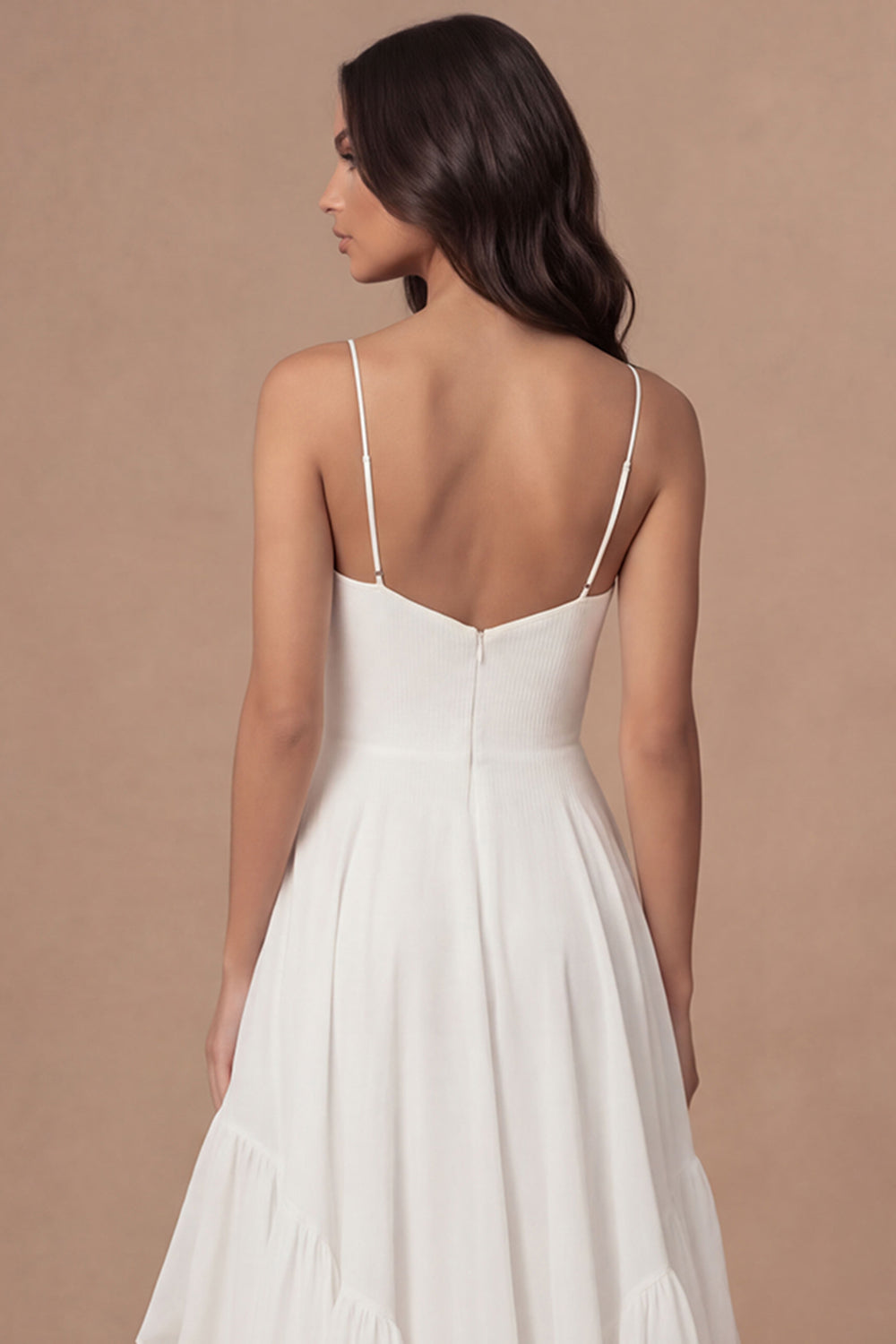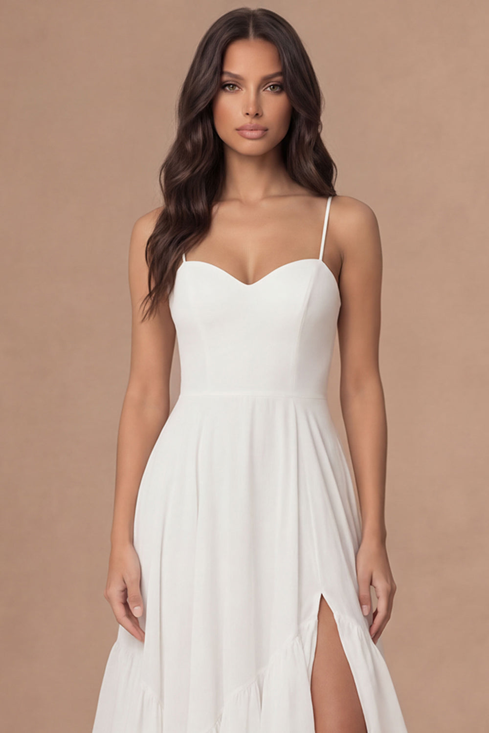 Ruffled Ivory A Line Long Bridal Shower Dress with Slit