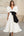 White and Black A Line Satin Maxi Engagement Dress with Ruffles