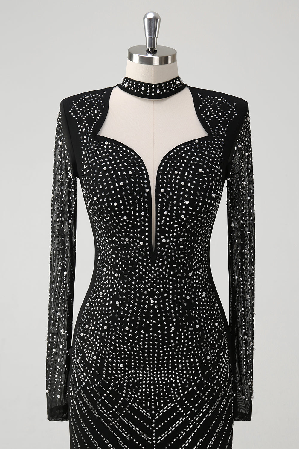 Glitter Beaded Long Sleeves Midi Sheath Formal Dress