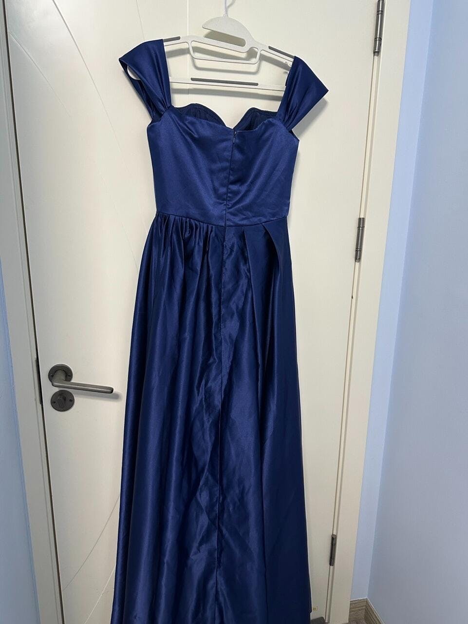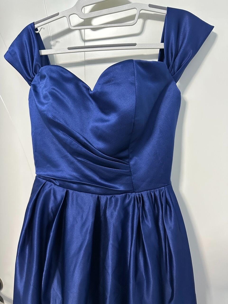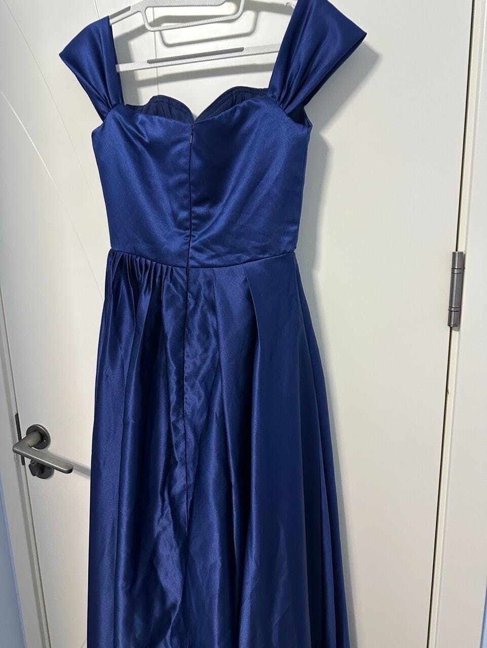 Royal Blue Plus Size Satin Off the Shoulder Long A Line Formal Dress with Slit
