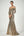 Gold Metallic V-Neck A Line Pleated Long Formal Dress with Slit