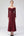 Burgundy V-Neck Sheath Satin Ruched Long Formal Dress with Slit