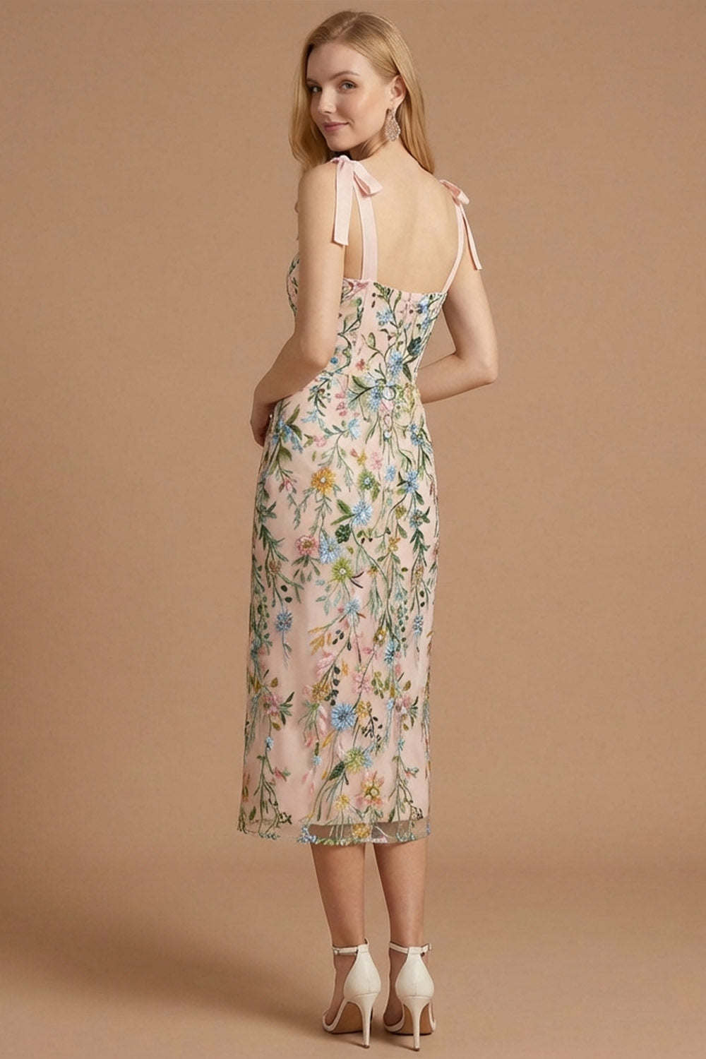 Pink Floral Sheath Thick Straps Embroidered Maxi Wedding Guest Dress