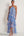 Blue Floral A Line V Neck Sleeveless Maxi Wedding Guest Dress with Slit